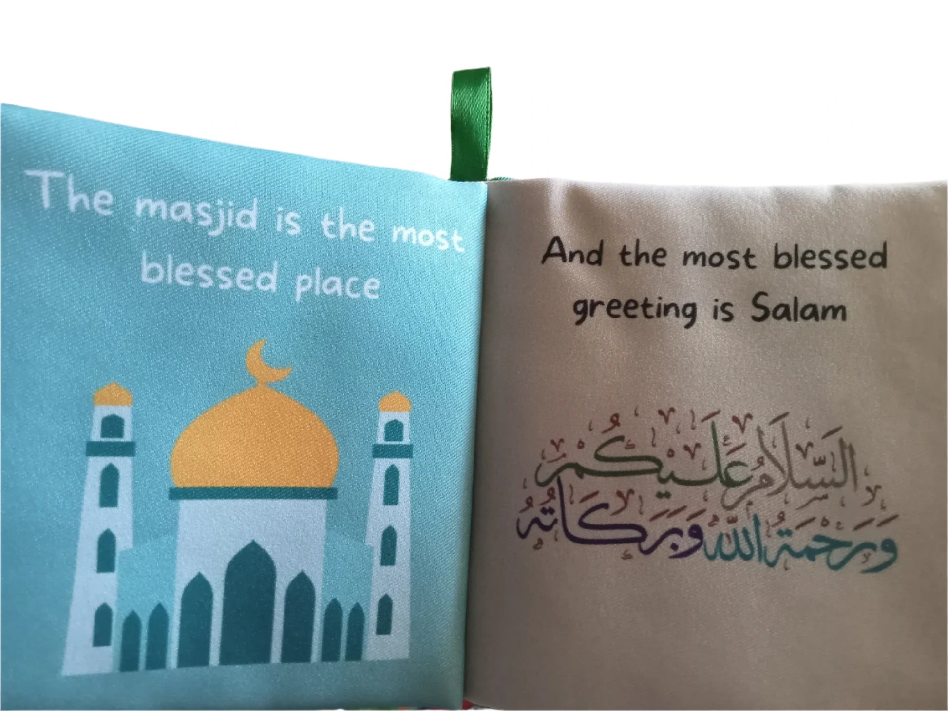 This baby cloth book is a perfect gift for your little one, introducing them to the blessed aspects of Islam in a fun and engaging way. It features soft, durable pages that are safe for babies to handle and explore. Each page is beautifully illustrated with vibrant colors and includes simple, meaningful text to help your child learn about important elements of Islamic faith and culture.